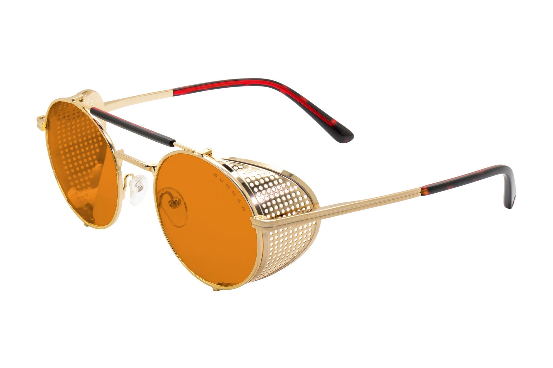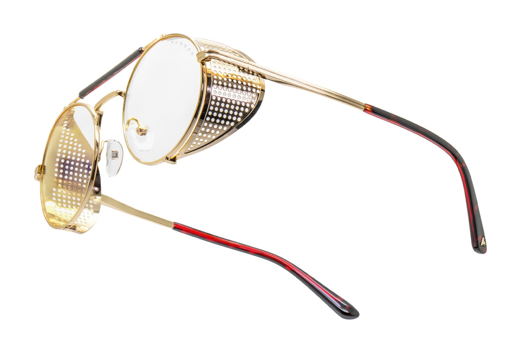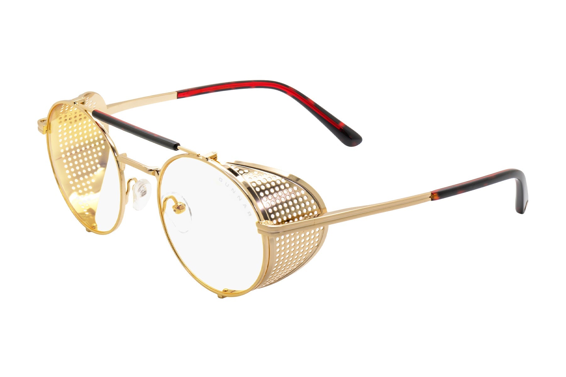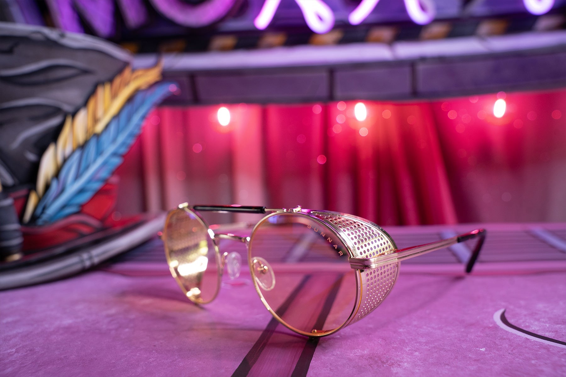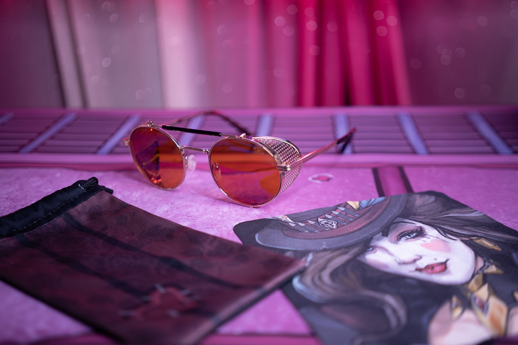Place your bets on chaos. Introducing Borderlands 4: Moxxi glasses — a daring, steampunk-inspired design dripping with charisma and danger, just like Pandora’s most infamous hostess. The bold, round frame boasts a gold-tone finish with removable mesh side shields, adding a touch of flair with a side of mystery. A heart engraving on the lens and gold heart details on the temple tips reflect Moxxi’s signature style, while deep red temple arms pay tribute to her iconic color scheme. Available in three signature GUNNAR tints — Amber, Sun, and Amber Max — these glasses are equipped with GUNNAR’s patented lens technology to protect against digital eye strain. Each pair comes with a custom microfiber cloth featuring Moxxi’s sultry portrait, a matching pouch with Borderlands — themed patterns, and a premium faux-leather case with a vault-inspired clasp. The perfect epic loot drop for any Vault Hunter ready to deal in mayhem.