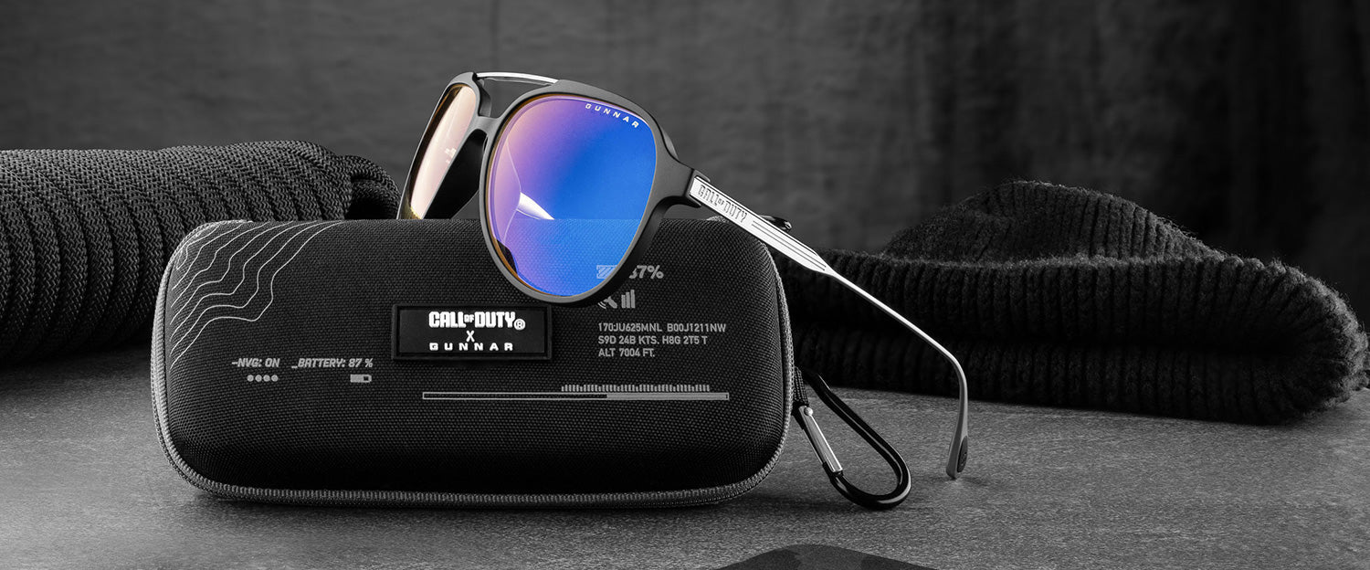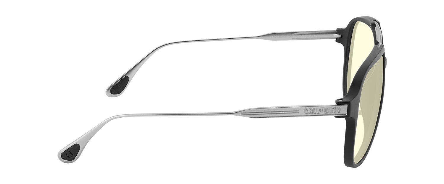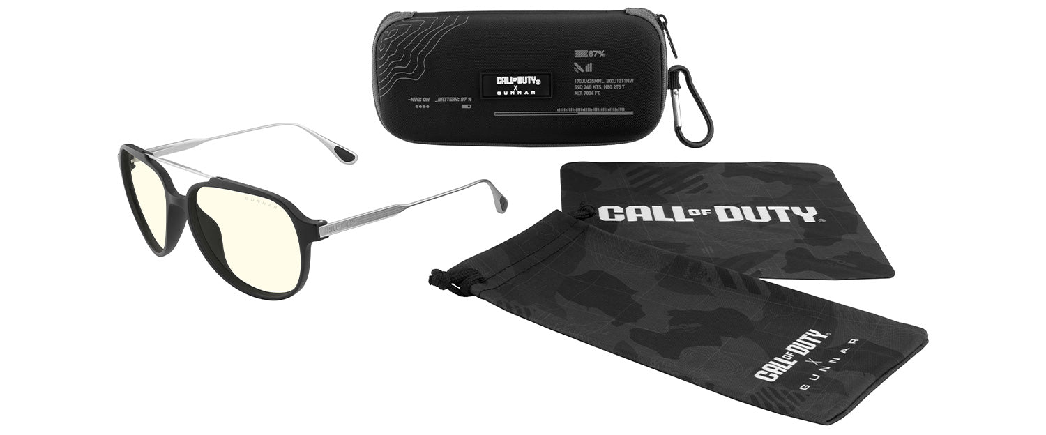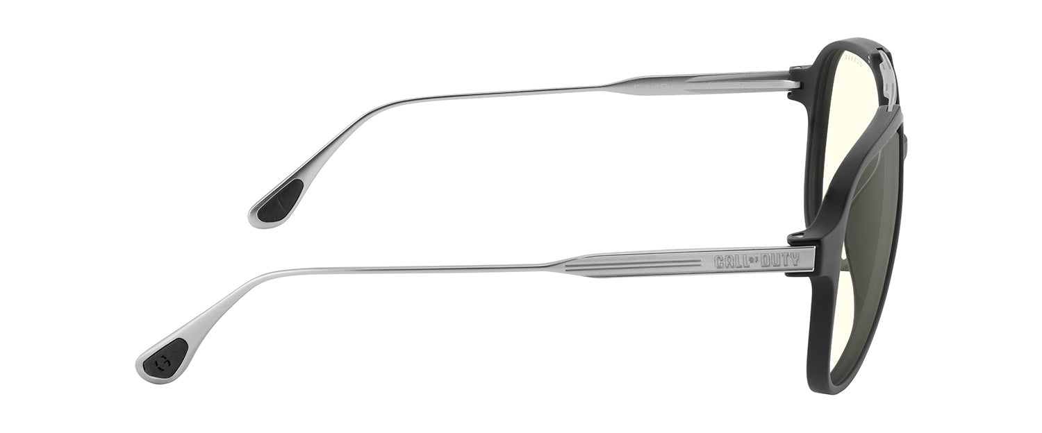 GUNNAR and Call of Duty join forces once again to create the Ghost edition glasses. A military-inspired aviator frame that comes equipped with a premium-engineered polymer front and stainless steel temples. The classic silhouette is offered in an Onyx/Mercury frame color combo and with 2 lens options; GUNNAR’s Signature Amber lens, or our new photochromic Amber Neutral Sun-Shift lens which transitions to a sunglass tint in a rapid 15 seconds. Equip yourself with the ultimate in stealth optical protection! Includes a collector’s case, pouch, and microfiber cleaning cloth.