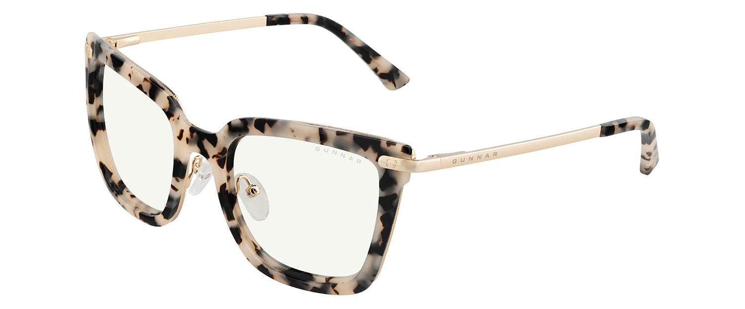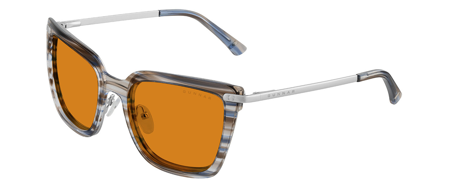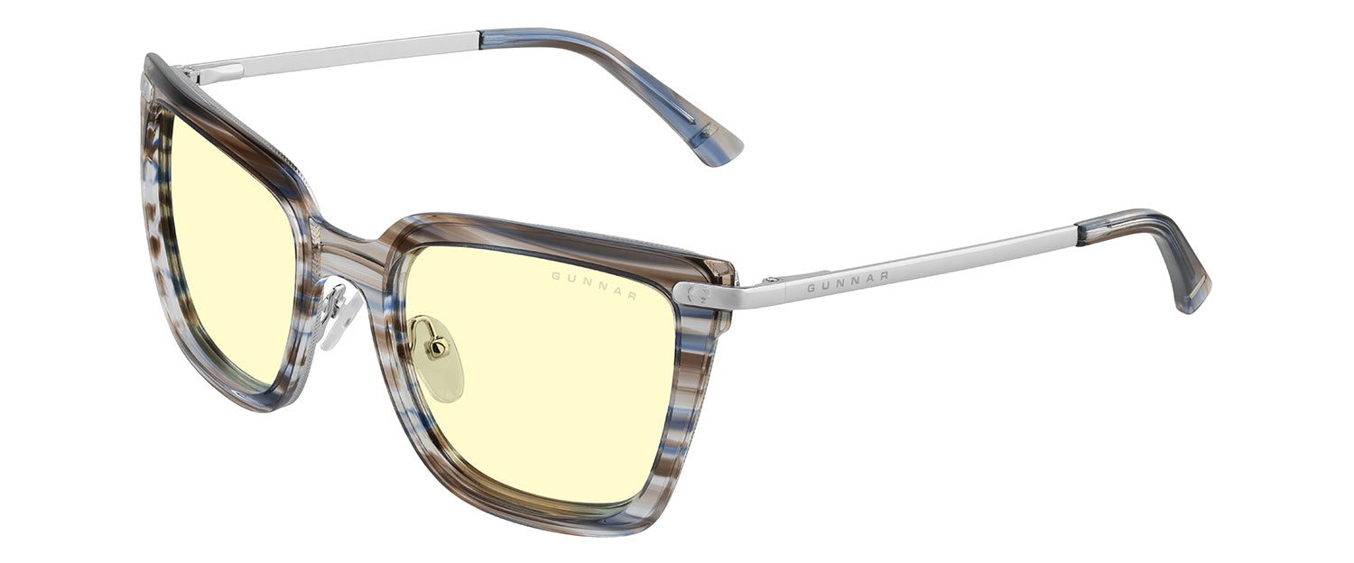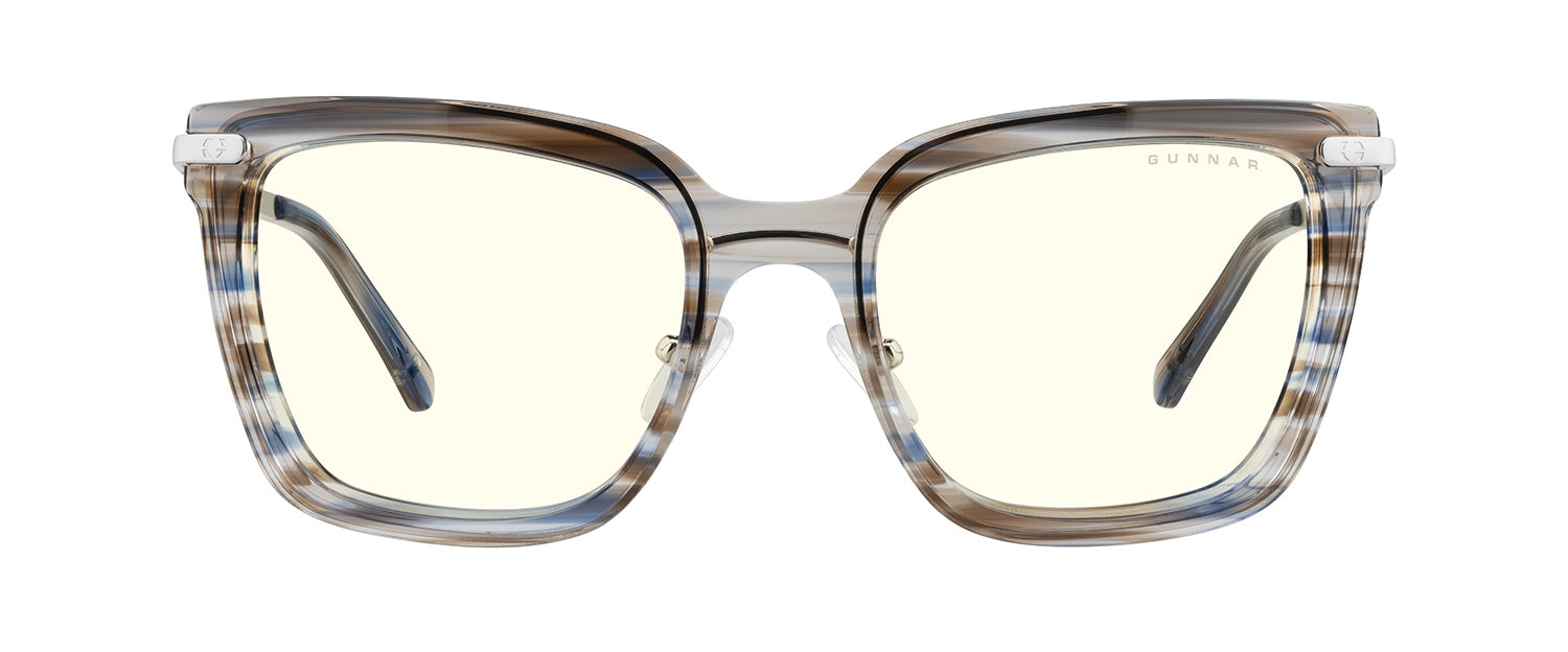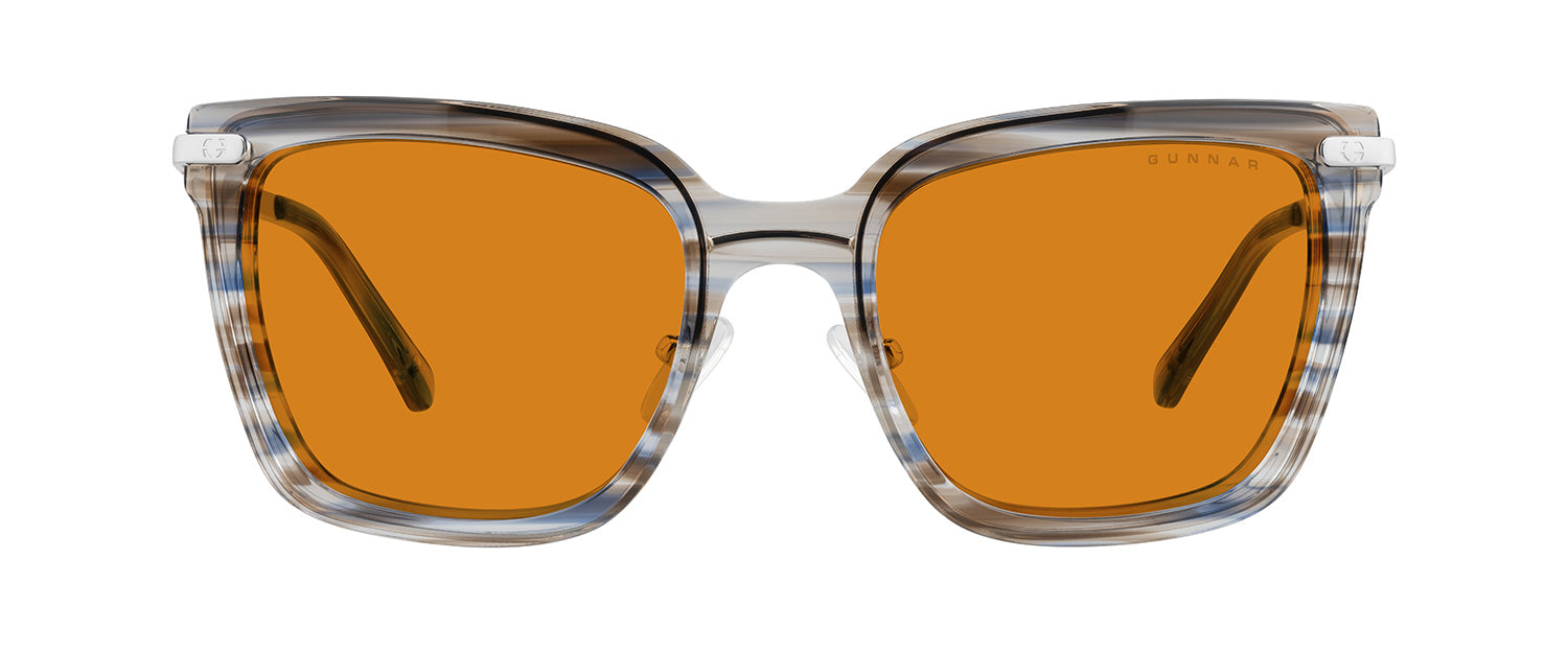 Inspired by the Nordic technology hubs and part of our Kista Collection, the Kaia showcases a contemporary square style with the patented GUNNAR lens technology. The glossy acetate frame for all-day comfort with a stylish keyhole bridge will be available in three unique colorways. This look is fitted with adjustable nose pads for added comfort and the latest lens tints for digital eye strain and blue light blocking including Amber and Clear.