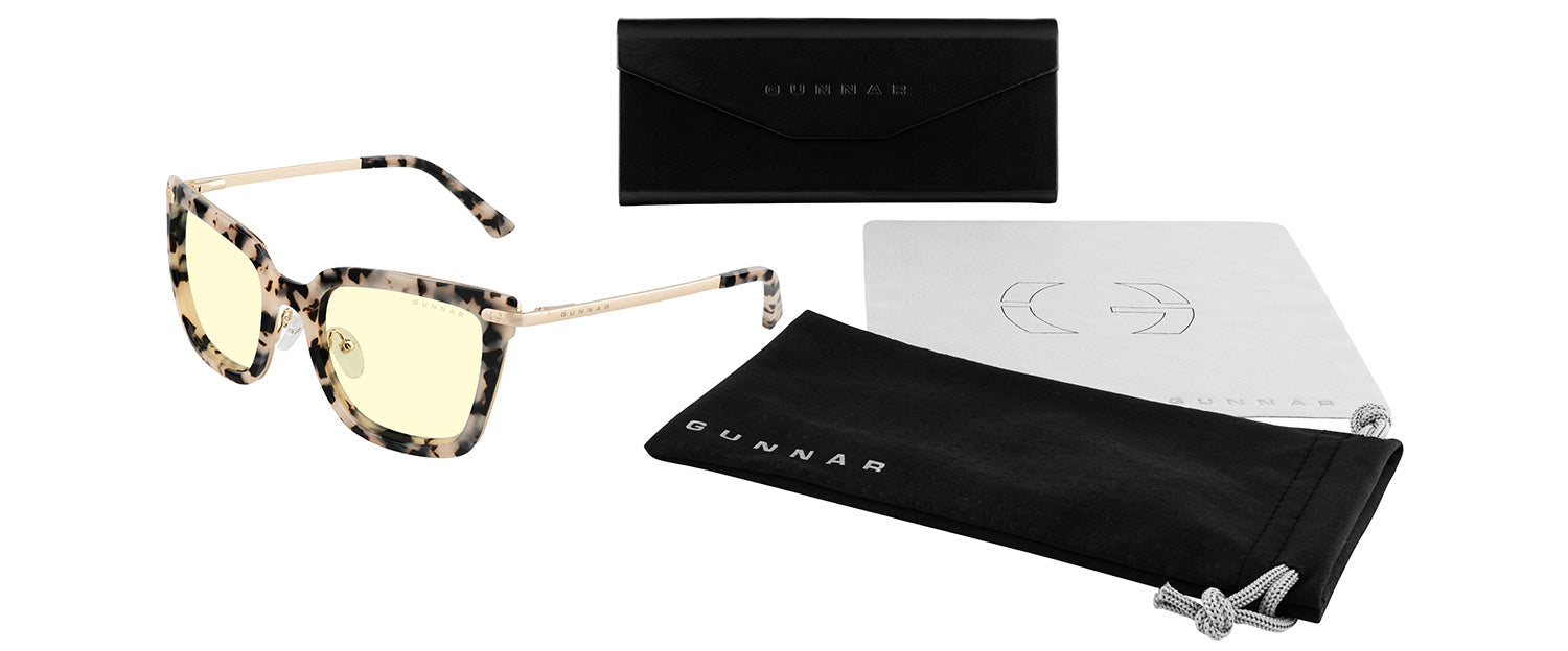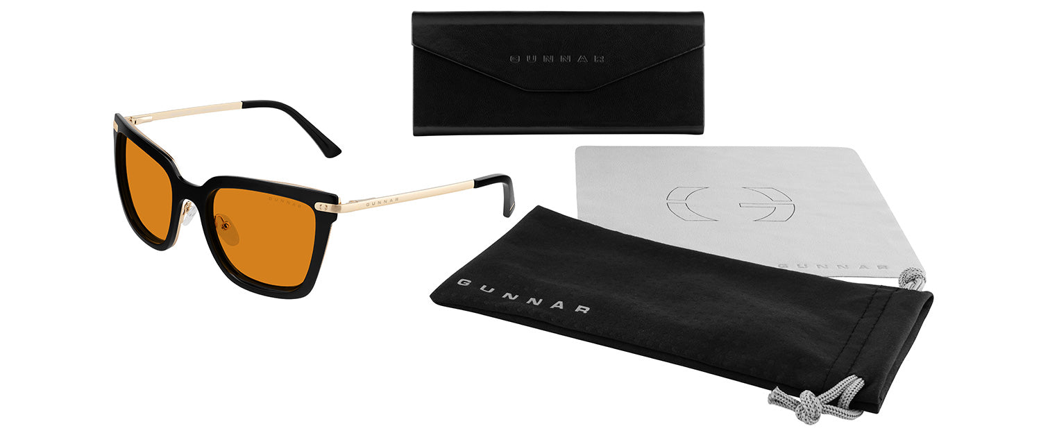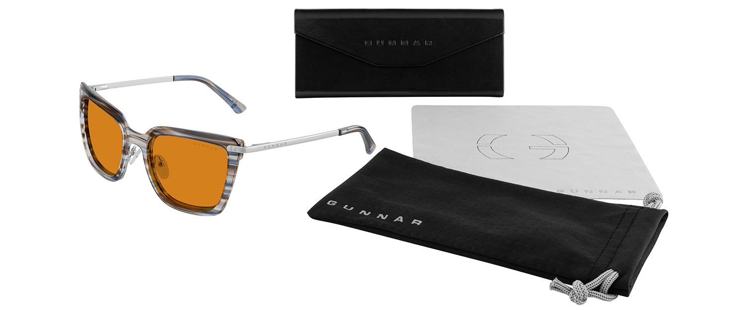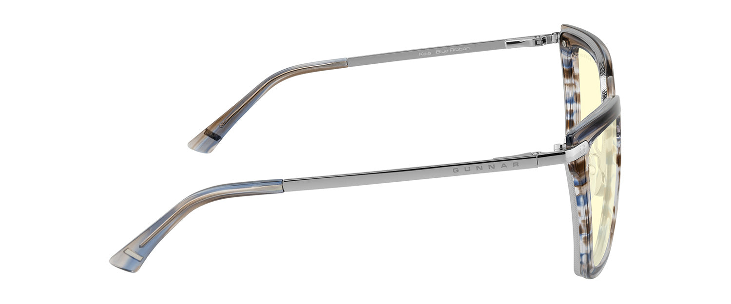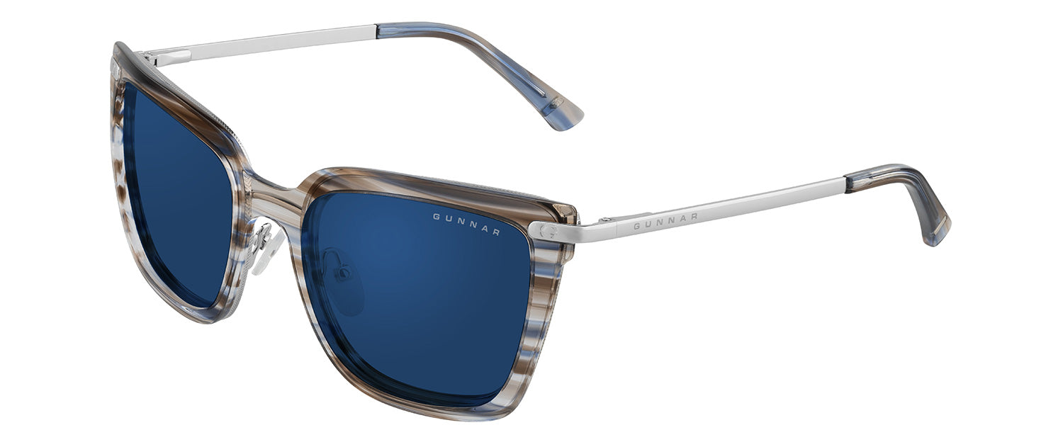 Inspired by the Nordic technology hubs and part of our Kista Collection, the Kaia showcases a contemporary square style with the patented GUNNAR lens technology. The glossy acetate frame for all-day comfort with a stylish keyhole bridge will be available in three unique colorways. This look is fitted with adjustable nose pads for added comfort and the latest lens tints for digital eye strain and blue light blocking including Amber and Clear.
