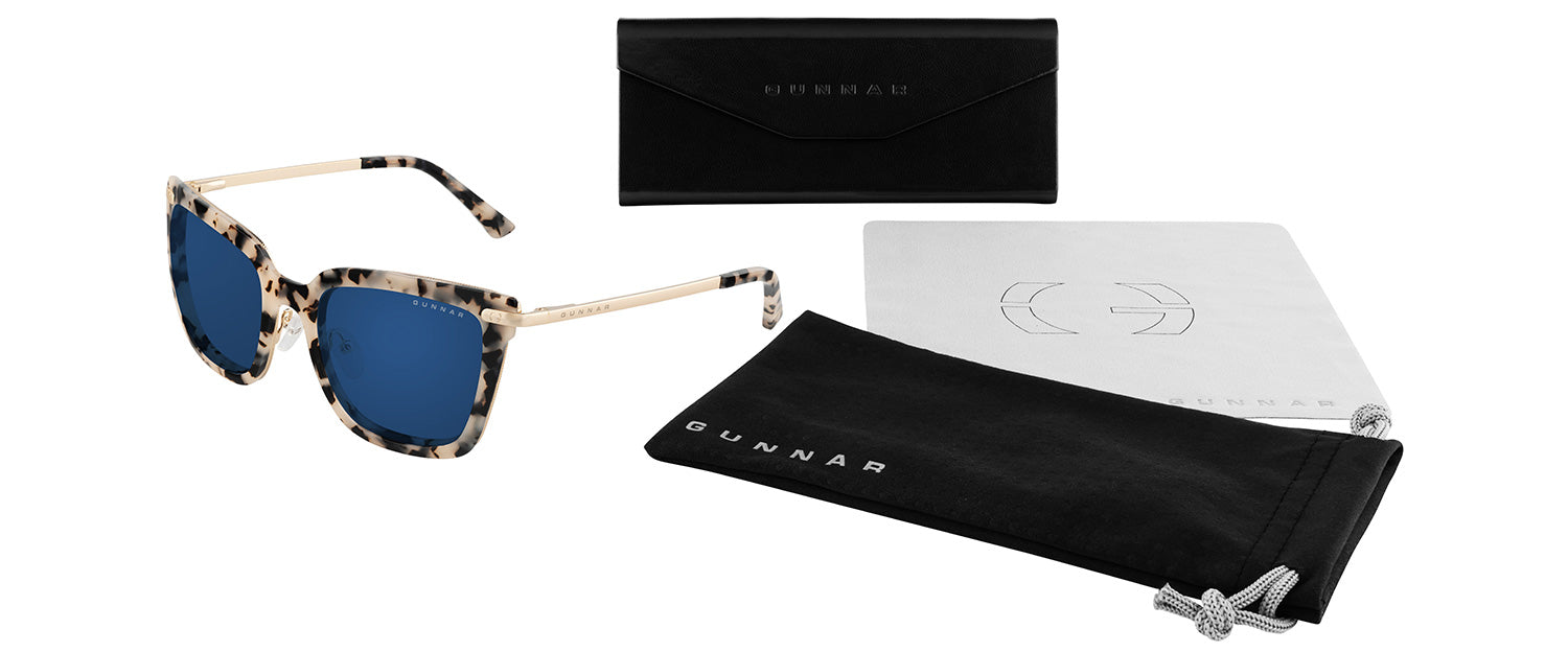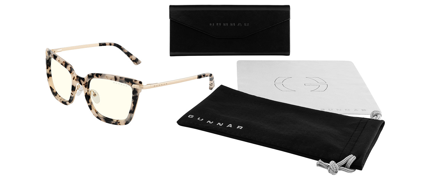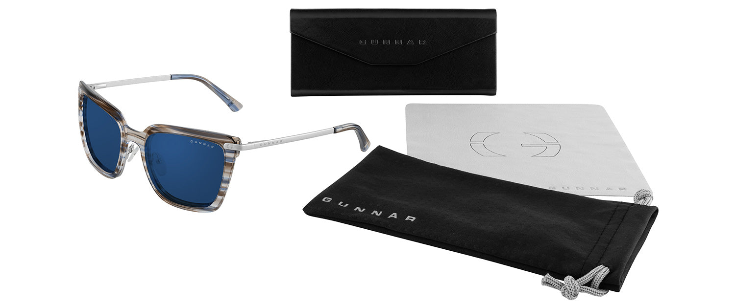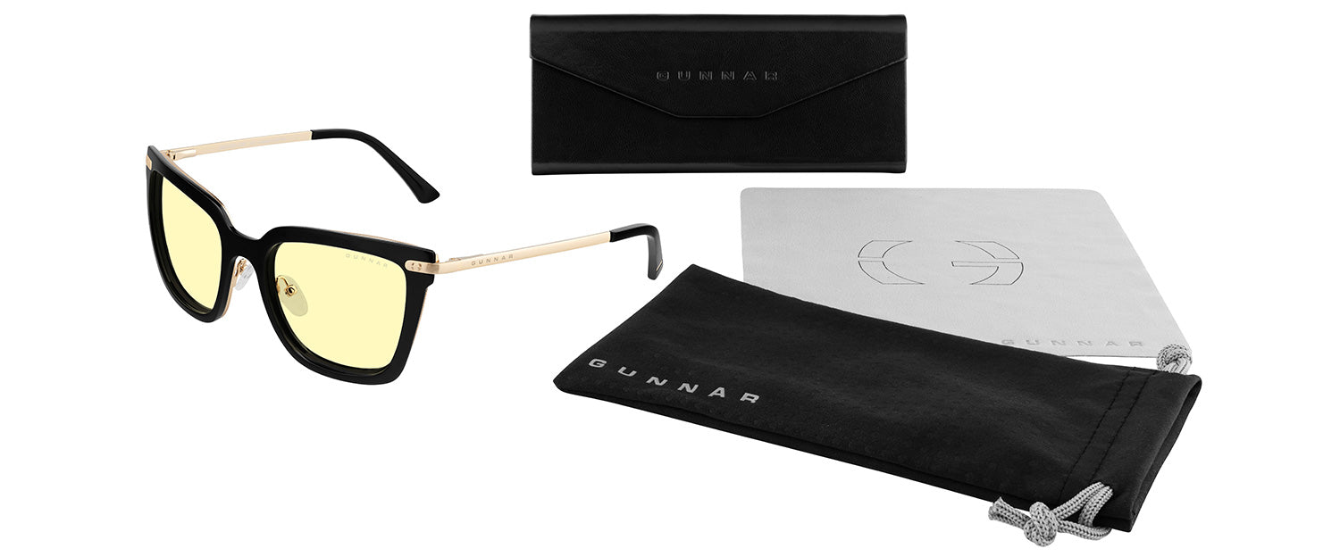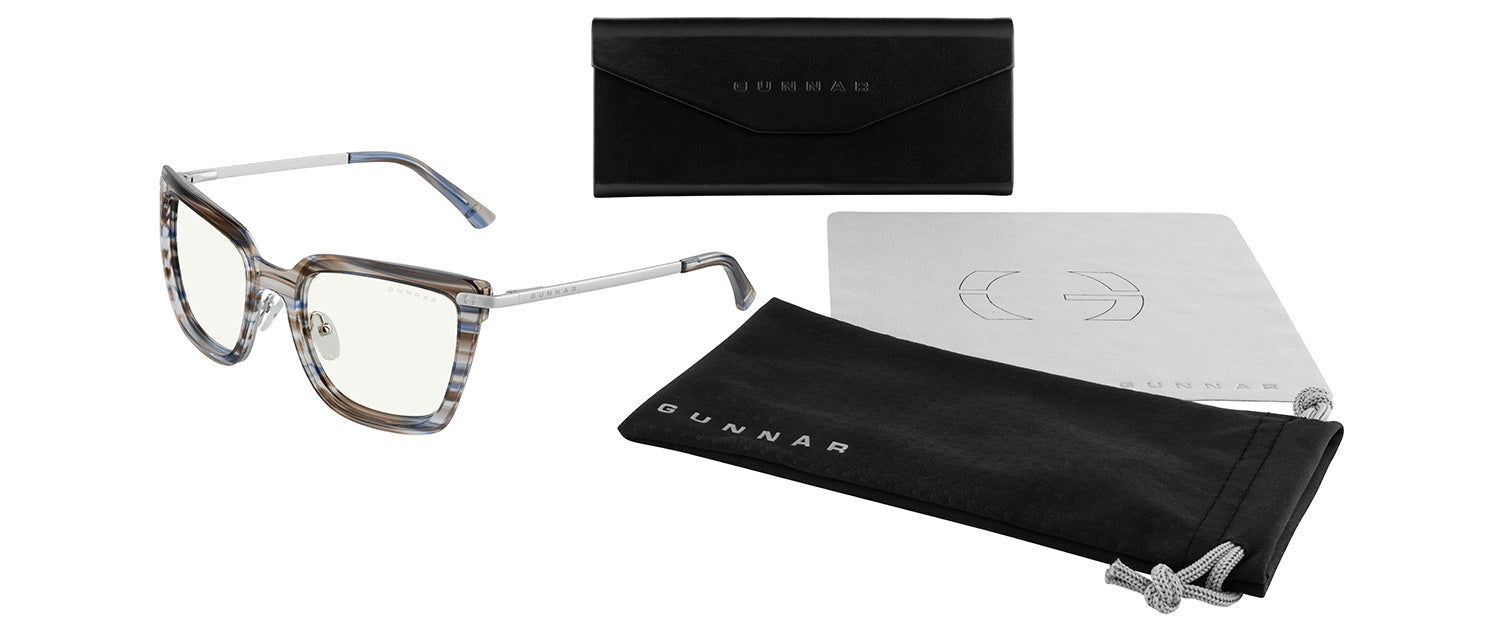 Inspired by the Nordic technology hubs and part of our Kista Collection, the Kaia showcases a contemporary square style with the patented GUNNAR lens technology. The glossy acetate frame for all-day comfort with a stylish keyhole bridge will be available in three unique colorways. This look is fitted with adjustable nose pads for added comfort and the latest lens tints for digital eye strain and blue light blocking including Amber and Clear.