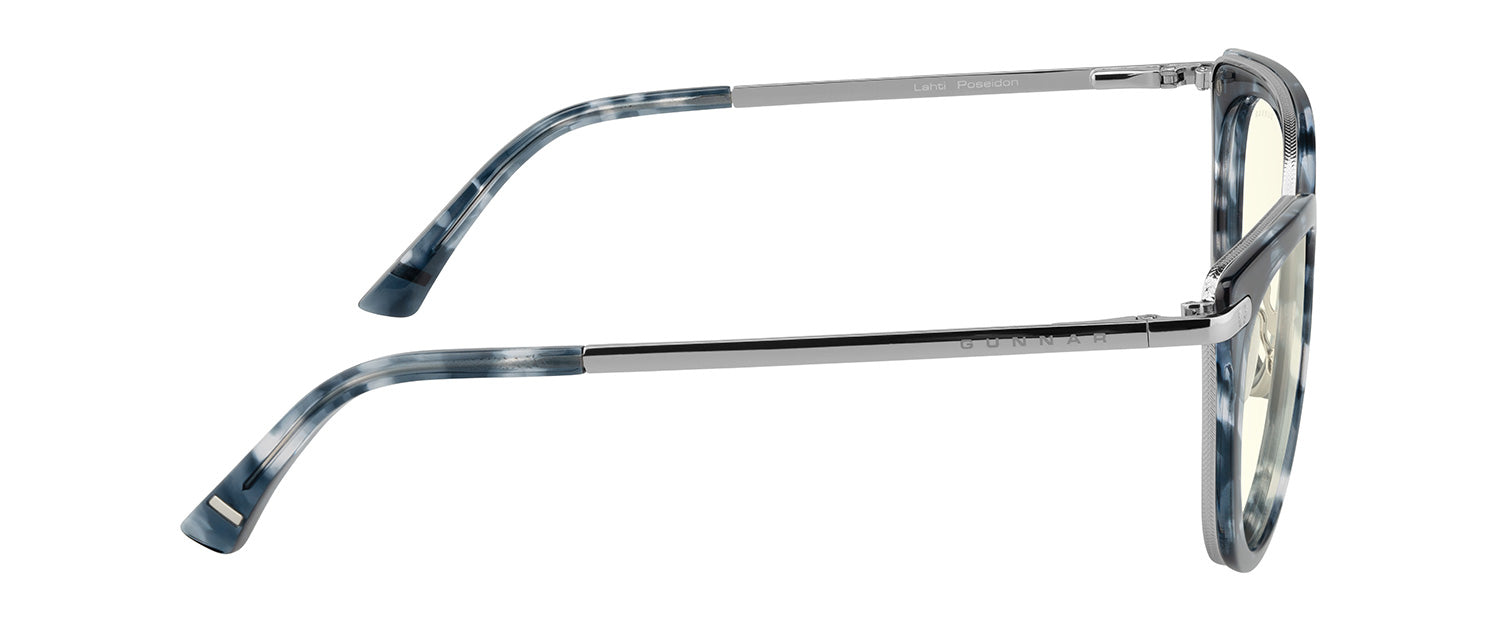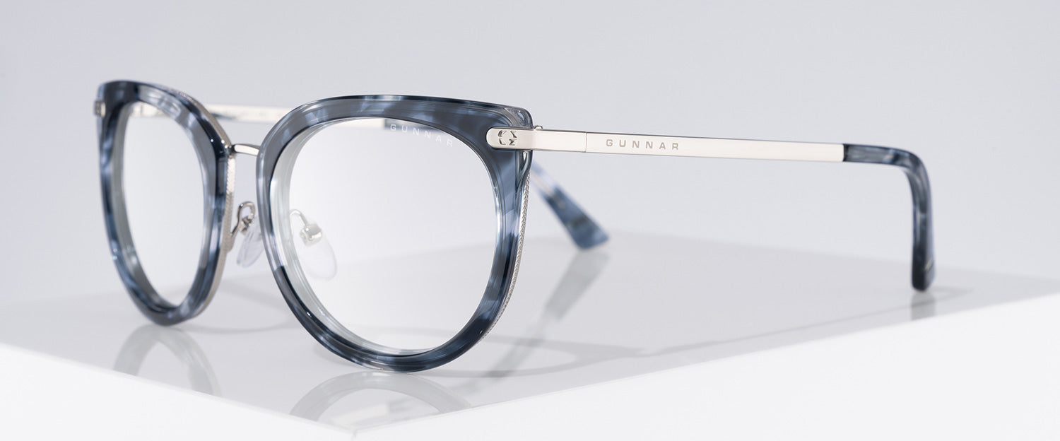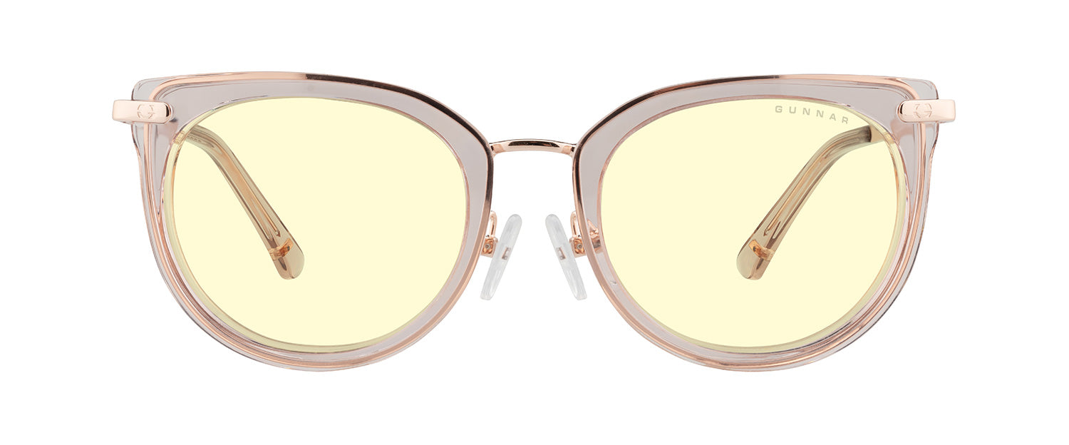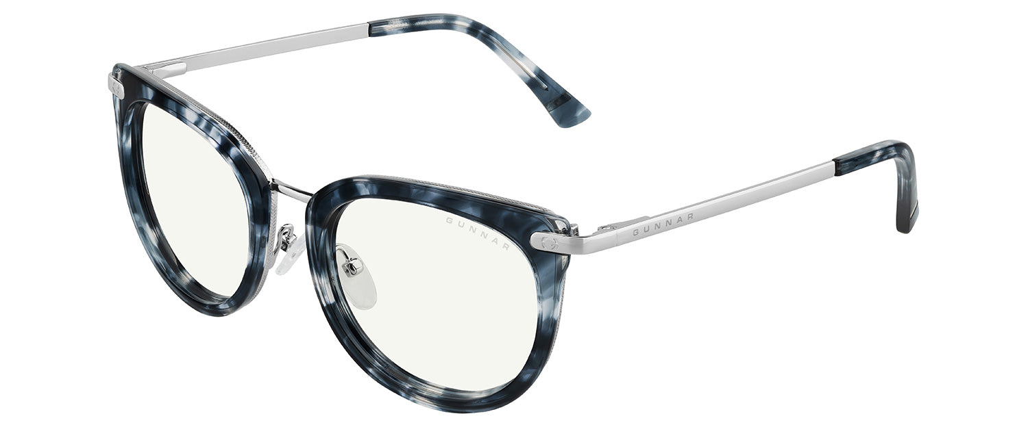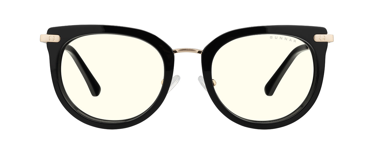 Inspired by the Nordic technology hubs and part of our Kista Collection, the Lahti chic design gives a designer look with the patented GUNNAR lens technology. The glossy contemporary round premium polymer frame, available in three unique colorways, has a flattened upper frame and is accented with metal details at the temples. This look is fitted with adjustable nose pads for added comfort and the latest lens tints for digital eye strain and blue light blocking including Amber and Clear.