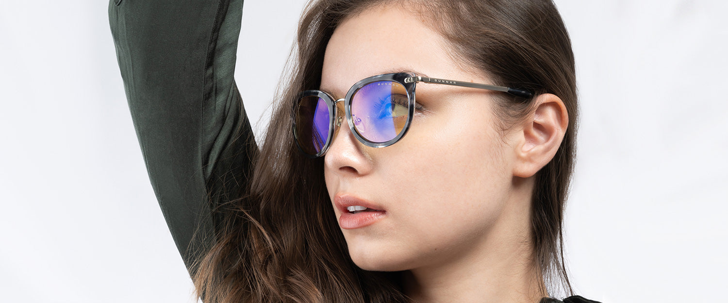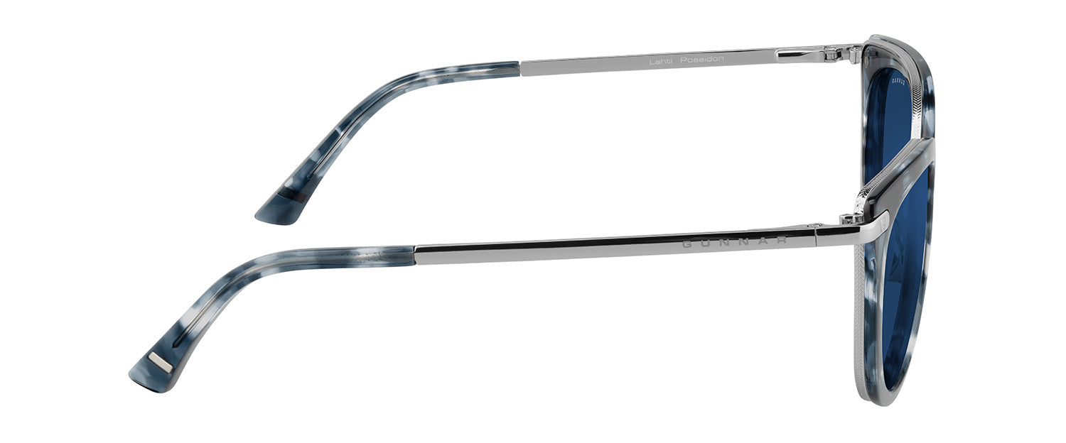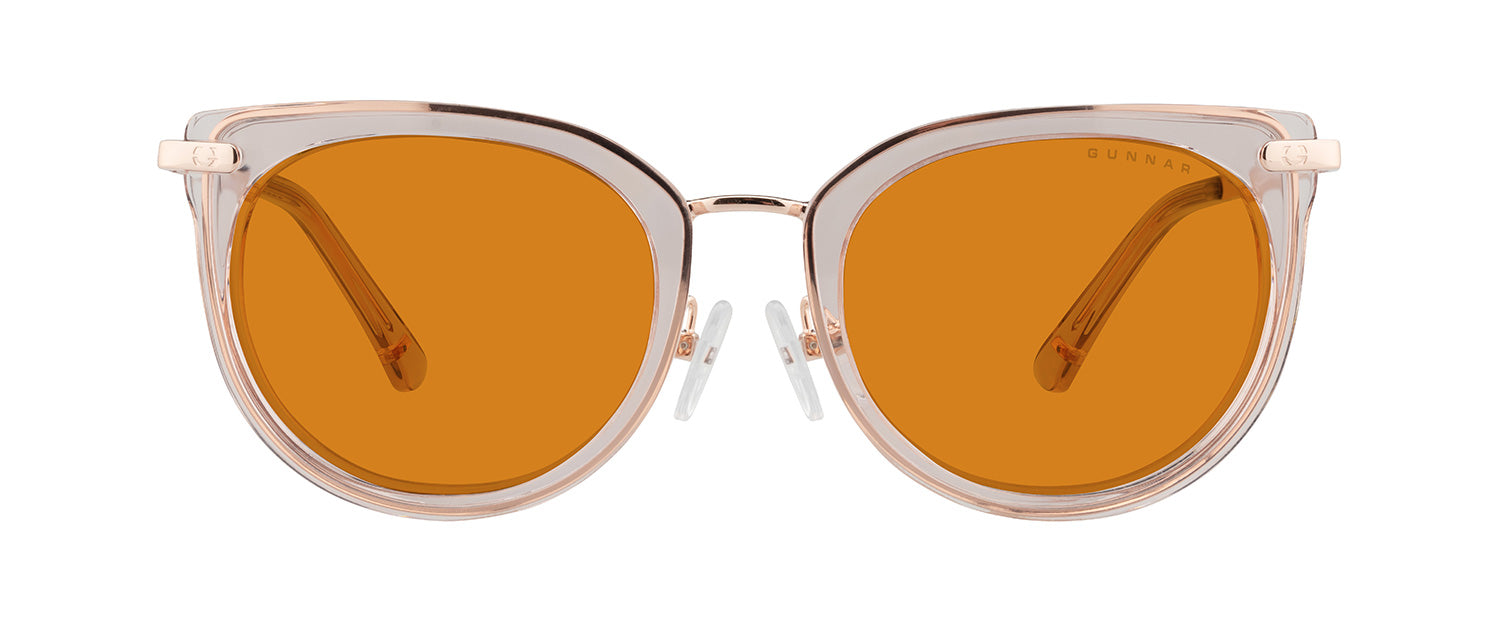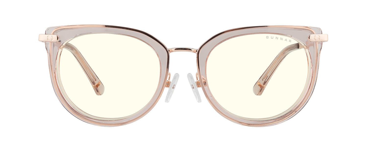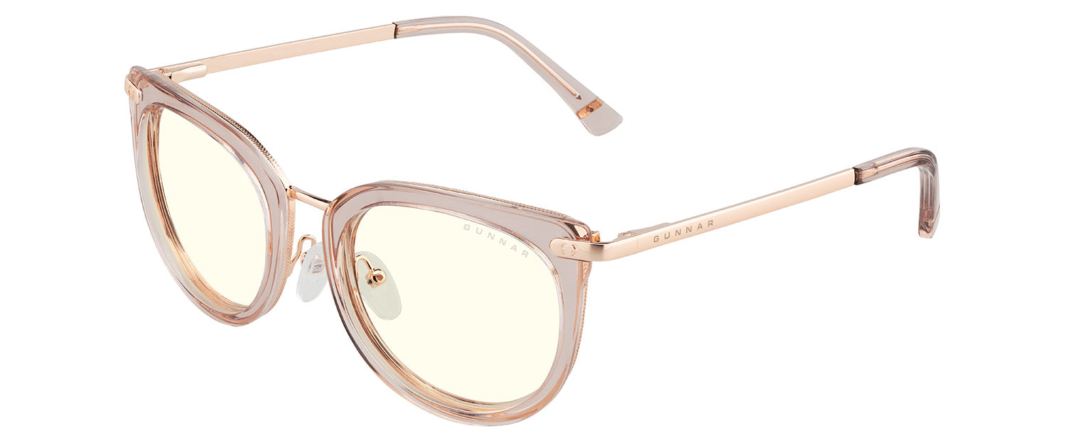 Inspired by the Nordic technology hubs and part of our Kista Collection, the Lahti chic design gives a designer look with the patented GUNNAR lens technology. The glossy contemporary round premium polymer frame, available in three unique colorways, has a flattened upper frame and is accented with metal details at the temples. This look is fitted with adjustable nose pads for added comfort and the latest lens tints for digital eye strain and blue light blocking including Amber and Clear.