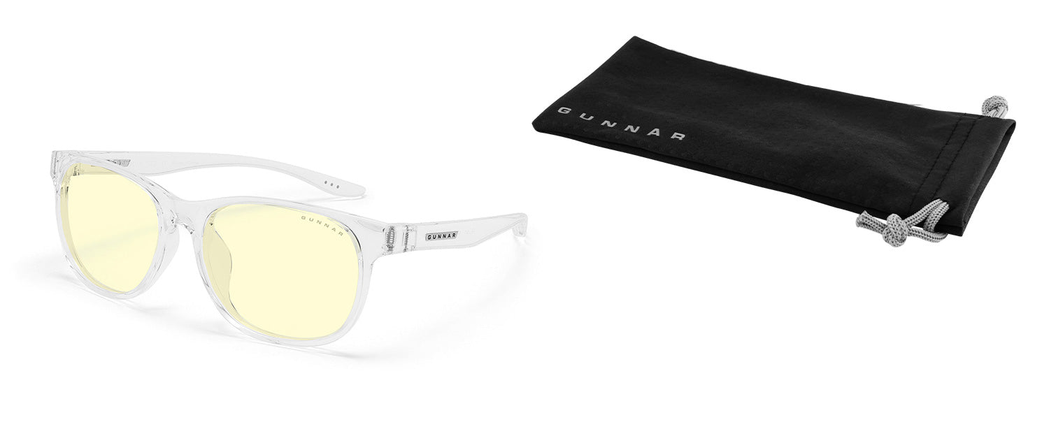 - Glasses come with a premium GUNNAR Youth hard case with zipper and safety clip plus cleaning cloth.
